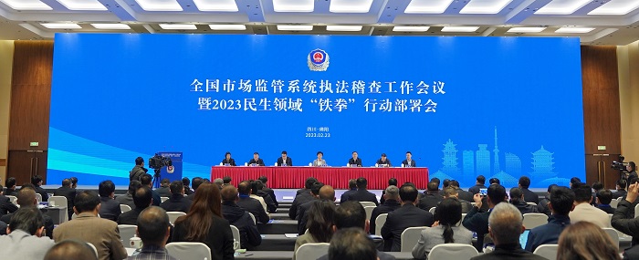 - 全國市場監(jiān)管系統(tǒng)執(zhí)法稽查工作暨2023民... 2月23日,全國市場監(jiān)管系統(tǒng)執(zhí)法稽查工作會議暨2023民生領(lǐng)域“鐵拳”行動(dòng)部署會在四川省綿陽市舉行。會議全面貫徹黨的二十大精神,深入落實(shí)全國市場監(jiān)管工作會議部署...
